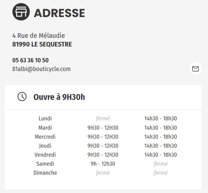 Jeudi 08h00 – 12h00 et 14h00 – 18h00